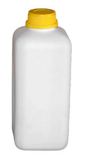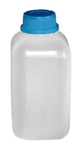 Polyethylene bottles, transparent or opaque with inviolable caps of different colours.